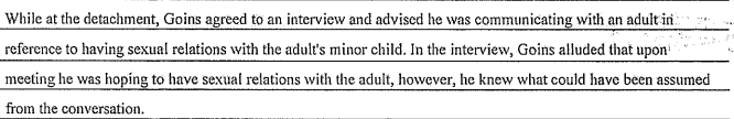 According to the complaint, Goins suggested that he was hoping to have sex with the adult, but it also says that he knew what could be assumed from that conversation.